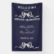 This Elegant Romantic Wedding Navy Ribbon & Bow Welcome Banner is designed with white text on a navy blue background with white bow accents. The front text includes: Welcome to our Wedding Celebration, the Bride and Groom's First Names and Wedding Date. To personalize, simply insert your text into our easy template, replacing the sample. Be sure to view the matching Wedding Congratulations Banner, Wedding Invitation, Save The Date Announcement and more.