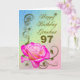 An elegant pink rose on a golden scroll work background. A beautiful card that will be sure to please your Grandma on her 97th birthday.