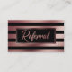 This rich, vivid design features a striking faux rose gold foil and black bold, horizontally striped pattern on the front. The center is masked by a black rectangle with double rose gold borders, enhancing the sophisticated design. In the center of the badge, using a pretty, modern script font, is a typography graphic overlay that says "Referral". This graphic text layer was embellished with the same rose gold effect as I used in the stripes and borders. On the back I've set up all the template fields you will need to offer the details and terms to your clients. Use the template fields to add your own details, and make any wording changes needed. You may also click to customize further if you'd like to change fonts, sizes or positions of any elements. // Ideal for salon owners, hair stylists, beauticians, manicurists and nail technicians, makeup artists, massage therapists, personal coaches, trainers, and many others in healing and personal service industries who appreciate honoring business referrals. // Please don't hesitate to reach out if you have special requests or need customizing assistance. // Designed by Melody Watson for Paper Muserie.