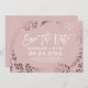 This elegant rose gold and pink wedding save the date card is perfect for a classy wedding. The design features a stunning faux rose gold foil leafy frame on a blush pink background and is paired with a dazzling cursive font. Personalize the announcement with the couples names, wedding date, location and wedding website.