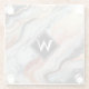 Elegant Rose Gold Black Marble Monogram Glass Coaster