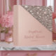 Featuring a stunning brushed rose gold shimmer design with sparkling glitter accents and elegant flowing script, this binder is perfect for keeping your bridal shower or wedding planning organized in style. It can be personalized with your own name and event details, making it a unique and thoughtful keepsake for the bride-to-be.