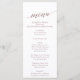 This elegant rose gold calligraphy dinner menu card is perfect for a simple wedding. The blush pink design features a minimalist card decorated with romantic and whimsical faux rose gold foil typography. This menu can be used for a wedding reception, rehearsal dinner, or any event.