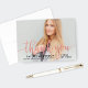 Add a blush of warmth to your gratitude with this stunning graduation thank you card. Rose gold calligraphy overlays your full-bleed senior portrait with your name, school, and class year below. Customize the photo and text for a soft, glamorous card that makes your appreciation shine.