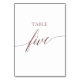 This elegant rose gold calligraphy table five table number is perfect for a simple wedding. The neutral design features a minimalist card decorated with romantic and whimsical faux rose gold foil typography. The card prints on the front and back (double-sided). Other table numbers in the collection are sold separately.