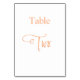The table number is written with an elegant hand lettered style script. Rose gold letters, white background. This table number is also available in black.