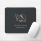 Island chic personalized mousepad for your business or home office features two lines of custom text in classic white lettering, on a soft black background adorned with a tropical conch shell illustration in faux rose gold foil for a beach glam look.