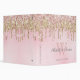 Elegant Rose Gold Glitter Drips Monogram Wedding 3 Ring Binder