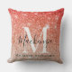 Add a touch of sparkling sophistication to your home decor with this chic rose gold glitter gradient throw pillow. Featuring a bold white monogram initial "M" overlaid with an elegant black script name and full name personalization at the bottom. This stylish pillow is perfect for a teen’s bedroom, a modern living room, or as a personalized gift for bridesmaids and birthdays. The faux glitter texture provides a high-end look without the mess! Easily customize the letters and names to make it uniquely yours.