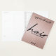 Elegant, trendy appointment book/planner for hairstylist, hair salon featuring rose gold coral pattern background and handwritten calligraphy script ''hair'' in deep black color. Personalize with a name on the front and details on the back.