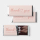 A luxurious wedding favor wrapper featuring "Thank You" in warm rose gold calligraphy script with delicate heart flourishes on a clean white background. The couple's names and wedding date sit below in a refined, metallic-toned layout. Rose gold tones add a glamorous, modern warmth to this sophisticated design. Personalize the names and date for an elevated reception favor. All text is fully editable.