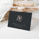 Island chic thank you notes or notecards for your business feature a rich soft black background adorned with a tropical hibiscus flower illustration in faux rose gold foil. Personalize with your custom text beneath in classic white lettering. Shown with the Hawaiian expression of thanks, "mahalo nui loa," and a second line beneath for your name, business name or custom message. Customize the pre-printed inside message with your choice of client thank you card wording, or delete to leave blank.
