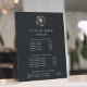 Elegant plaque with easel displays your salon services or price list in classic white lettering on a rich soft black background adorned with a tropical faux rose gold foil hibiscus flower illustration. Includes three customizable headings and body text fields. To adjust layout, enter your text and then use the Customize function to change positioning and font sizes.