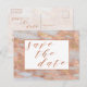 Elegant Rose Gold Marble Script Save The Date Announcement Postcard