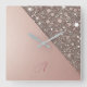 Elegant Rose Gold Monogram Square Wall Clock
