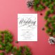 Elegant rose gold and white wedding invitation with a swirly calligraphy script saying Wedding in rose gold foil. Elegant calligraphy wedding invitation in white with rose gold foil lettering. You're invited to the wedding of wedding invitation with informal wording in rose gold on white.