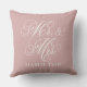 Elegant Rose Mr and Mrs Script Custom Monogram Throw Pillow