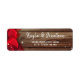 Rustic wedding return address labels that you can personalize for your special day! Do you have a county wedding or barn wedding theme planned? These rustic return address labels are easy to customize with your own info. Change the modern script if you wish, and re-position or hide the graphics. The unique watercolor design depicts red rose petals resting on a dark vintage wood background with subtle light sparkles from string lights (turn these off if you wish by customizing the design further). Category: elegant return address labels; rustic wood return address labels; and floral watercolor return address labels. Rustic wedding theme colors: red and dark rich brown vintage wood.