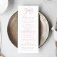 Add a romantic and refined touch to your wedding reception with this rose pink bow wedding menu. The design features a delicate hand-drawn bow in a warm rose hue, paired with "Menu" written in elegant calligraphy at the top. Personalize it with your names, wedding date, and menu selections to match your special day. This pink tone offers a sophisticated pop of color, making it ideal for modern romantic weddings, vintage-inspired themes, or celebrations with rich floral palettes.
