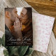 Announce your wedding date in style with this romantic photo save the date card. The front displays your vertical engagement photo with “Save the Date” in elegant white calligraphy, complemented by traditional serif lettering for your personalized details. The back features a dusty rose pink and white chinoiserie floral pattern, offering a soft, vintage-inspired look with timeless appeal. Ideal for couples who love classic design with a gentle pink tone, this save the date provides a graceful introduction to your wedding stationery.