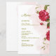 Make your wedding menu unforgettable with this stunning rose-themed design. Featuring deep red roses on a soft pink watercolor background, this card radiates romance and sophistication. The combination of modern sans-serif and elegant script fonts adds a touch of timeless charm. A heartfelt message invites your guests with simplicity and grace. Perfect for romantic weddings, garden celebrations, or intimate ceremonies.