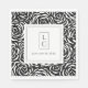 These elegant wedding luncheon paper napkins feature a white rose design on a black background with the wedding couple's initials in a pewter white monogram style along with the wedding date.