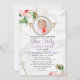 Modern elegant Invitation for your daughter's first communion celebration. The invitation is so beautiful featuring a bunch of pink roses design with a Marble background. Also, we have made the invitation with extra customization with the photo of your daughter to make it look more unique and special. All it takes is taking a picture with your phone and adding it to the modern beads frame.