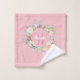 Pretty pink monogram bath towels, featuring a beautiful white script name with a complimenting pink initial that is framed by a delicate watercolor floral rose garland on a peach pink background. Personalize to create a special keepsake gift to treasure! Designed by Thisisnotme©