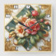 Elegant Roses With Green Background and Gold Trim Square Wall Clock