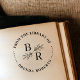 Elegant Round Botanical Initials Library Bookplate Rubber Stamp