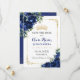 Elegant Royal Blue Flowers Gold Quinceañera 16th Save The Date