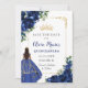 Elegant Royal Blue Flowers Princess Quinceañera Save The Date