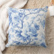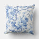 Elegant Royal Blue French Toile Rose Pattern Chic Throw Pillow