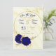 elegant romantic royal blue flowers and gold leaves on gold circle save the date invitation