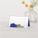 These elegant wedding place cards are designed so you can print out the name and table number on a standard white address label and affix them to each card. The romantic design features a lovely long stemmed royal blue or cobalt colored rose lying on its side. The back has the couple's names and wedding date.