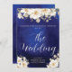 Elegant Royal Blue Rose Fancy QR Code Wedding Invitation