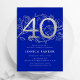Elegant Royal Blue Silver 40th Birthday Invitation