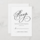 This response card features the letters "rsvp" in an elegant black script. Text fields are customizable and can be changed, if desired.
