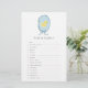 This word scramble Baby Shower game features a hand drawn yellow rubber duck framed in a soft blue ribbon tied in a bow at the bottom.