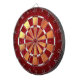 Add a touch of elegance to leisure time with this metal-and-stone themed dartboard, which features alternating ruby red marble, white marble, and copper foil patterns.