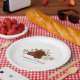 These beautiful wedding paper plates feature a rustic yet elegant boho chic floral design with a cluster of hand painted watercolor roses and greenery in shades of rust orange, burnt umber, and peach. The names of the couple are written in elegant script lettering and wedding date is show below. Wonderful way to add class and style to your wedding reception, shower, or rehearsal dinner.
