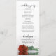This beautiful wedding program features an elegant design with a single long stemmed rust orange colored rose lying on its side reflecting in water. The titles are written in fancy script calligraphy, and there is space for your ceremony and wedding party details, as well as a short thank you for your guests. Wonderful way to welcome your friends and family to your wedding celebration.