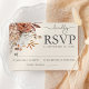This elegant autumn RSVP card features burnt orange and terracotta watercolor florals with boho garden roses and burgundy dahlias. Rustic handwritten calligraphy adds charm to this simple, modern design—perfect for bohemian outdoor fall weddings.