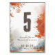Earthy colors of a autumn landscape in rusty orange. Large table number in this rustic design. Perfect for a fall wedding. Same design on both sides.
