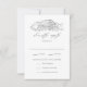 Rustic wedding RSVP cards with a black sketched illustration of a barn displayed at the top of the design on a white background. The barn wedding RSVP cards features "kindly reply" in elegant black calligraphy. Personalize the sketched barn RSVP cards with your desired RSVP date, custom accepts/declines wording, and meal choices.