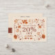 Offer exclusive savings with style using our Elegant Rustic Boho Brown Fall Floral Pattern Discount Card. Featuring a rich rustic brown backdrop adorned with intricate fall floral accents, this voucher captures the essence of autumn with a touch of sophistication. Perfect for seasonal promotions or special events, the elegant design adds warmth and charm, making it a memorable way to reward your customers. Impress your customers with a voucher that’s as stylish as your brand, while giving them the perfect reason to return!