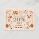 Elegant Rustic Boho Brown Fall Floral Discount Card
