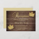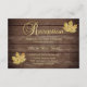 Elegant reception wedding cards to send with your invitations. Rustic / country theme. Gold topography letters in faux gold with maple leafs. Background in deep wood panels. Editable templates - easy to add your information. Perfect fall / autumn wedding theme. Found in "FALL IN LOVE - COUNTRY" wedding collection.