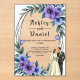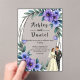 This elegant watercolor floral wedding acrylic invitation is perfect for a modern wedding. The romantic design features a sleek watercolor floral frame with a bride and groom illustration and black calligraphy on a white background.
