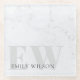 Elegant Rustic Marble Stone Ivory Grey Monogram Glass Coaster